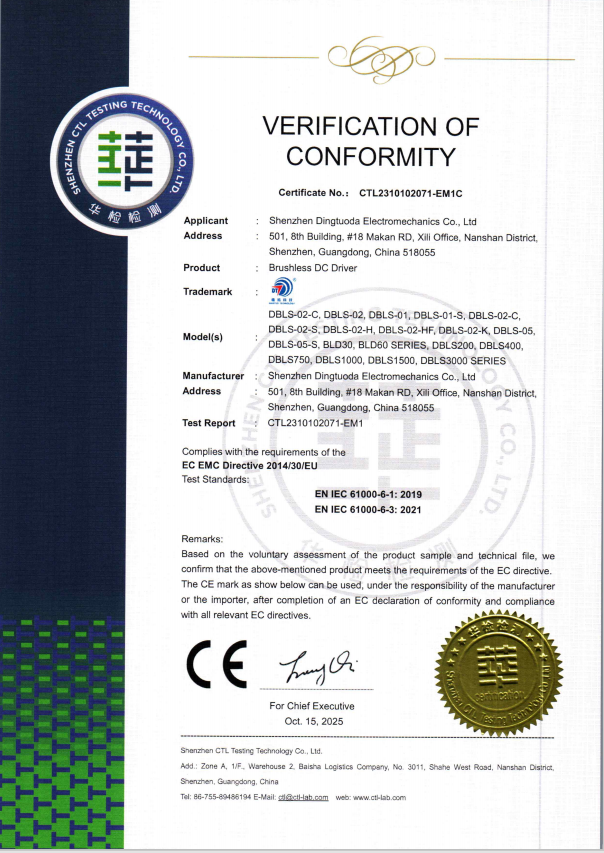 首頁->產品認證->無刷驅動器CE證書