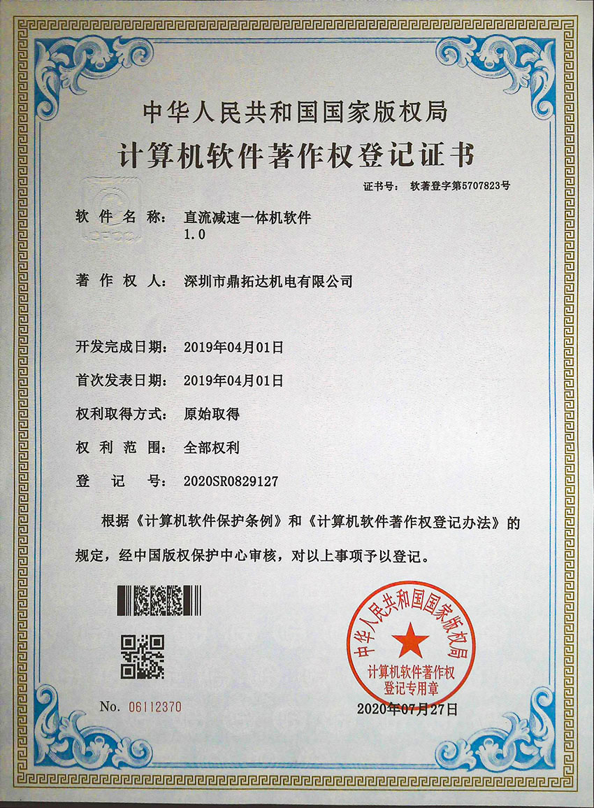 直流減速一體機軟件證書